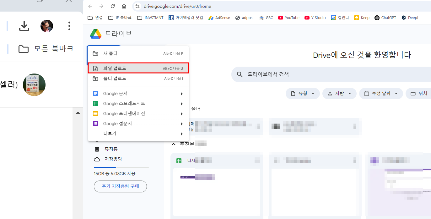 (2) 왼쪽 상단에서 [만들기 또는 업로드] - [파일 업로드]를 선택하고 공유할 파일을 선택합니다.