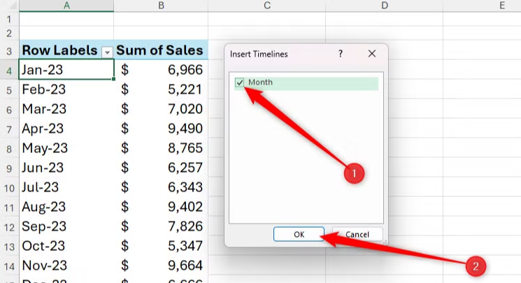 대화 상자가 나타나면 “월”(또는 테이블에 있는 기간)을 선택하고 [확인]을 클릭합니다.