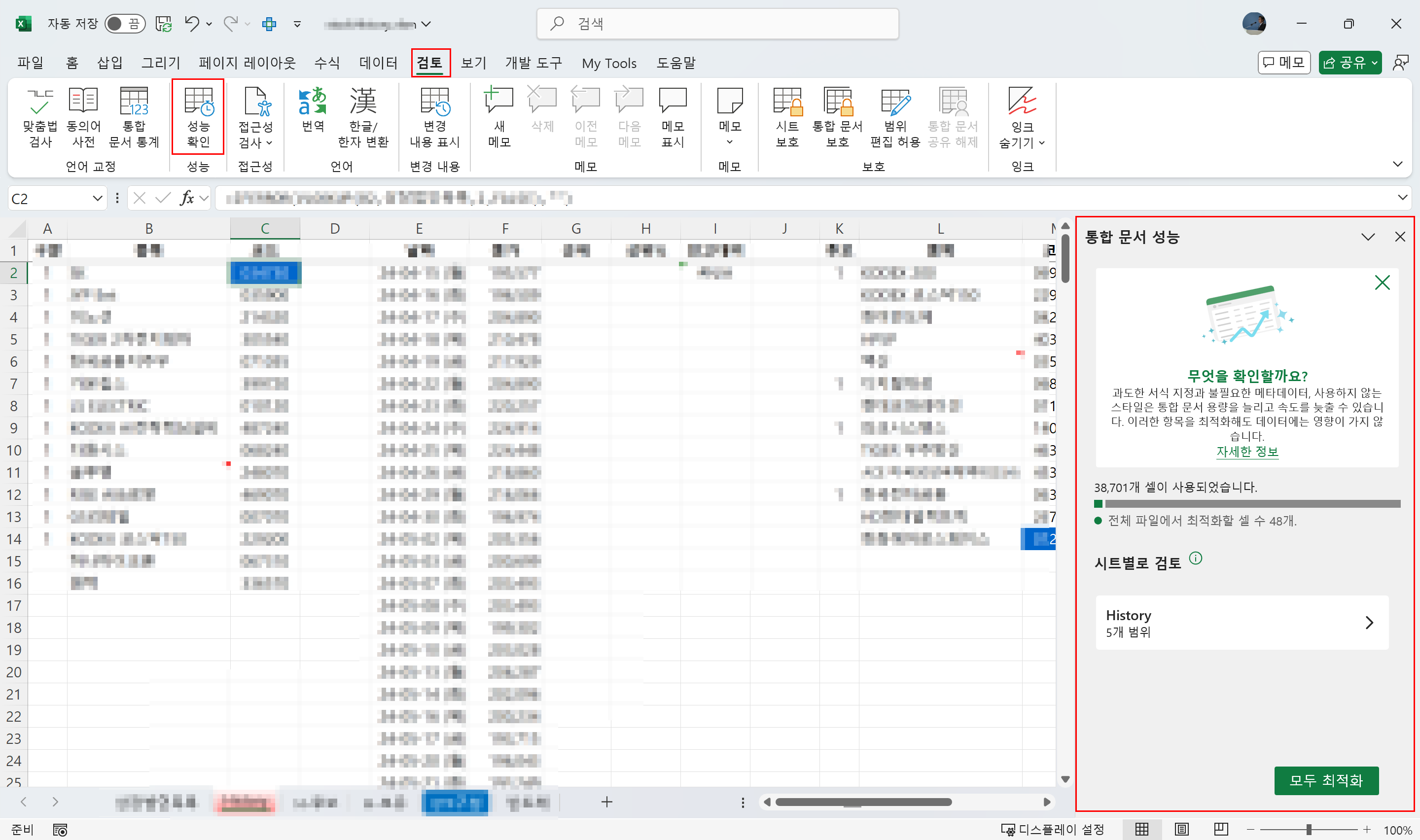 대시보드가 느리고 오류가 발생하는 경우, 내장된 성능 기능을 활용하세요. 이 기능은 통합 문서, 특히 대시보드를 최적화하는 데 매우 유용한 도구입니다. 통합 문서를 검사하여 과도한 서식, 불필요한 계산, 사용하지 않는 셀이 포함된 넓은 범위, 불안정한 수식 등의 문제를 해결합니다.