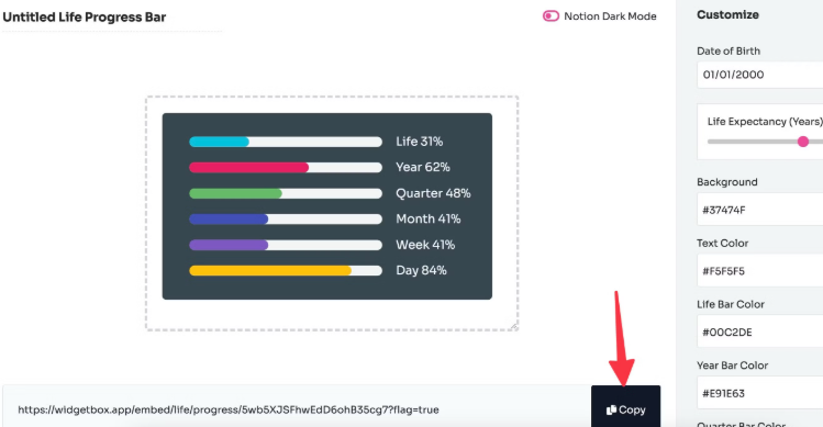 (2) 위젯을 사용자 지정하고 링크를 복사합니다.