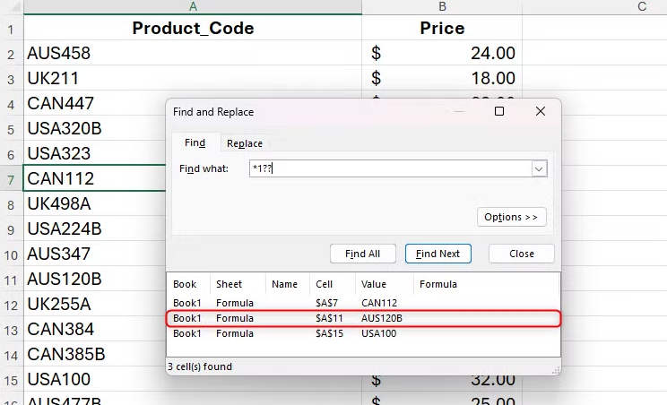 Excel에서 와일드카드를 가장 일반적으로 사용하는 방법 중 하나는 통합 문서에서 문자를 찾아 필요한 경우 대체 문자로 바꾸는 것입니다.