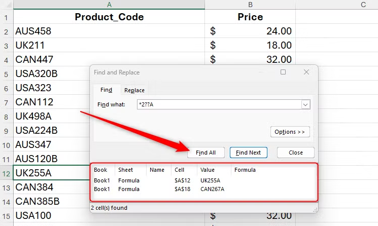 - 두 개의 물음표 뒤에 문자 A가 오면 Excel에서는 나머지 문자열이 두 개의 문자와 문자 A로 구성되어야 한다는 것을 의미합니다.
