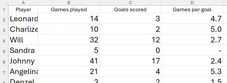 위 예에서 D5 셀의 결과는 숫자를 0으로 나눌 수 없기 때문에 오류가 발생했습니다. 이 문제를 해결하는 한 가지 방법은 셀을 다시 입력하고 수식을 편집하는 것입니다.