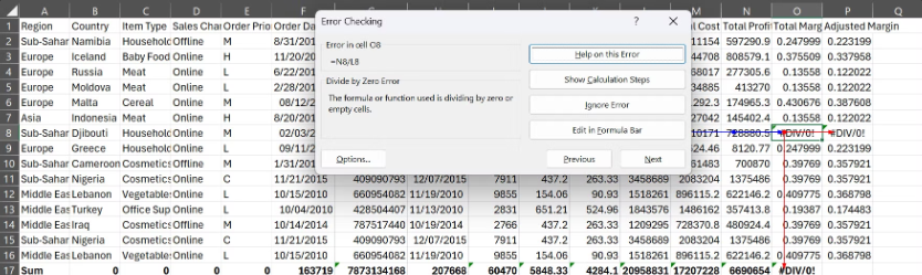 아래로 스크롤해서 데이터 곳곳에 오류 메시지가 흩어져 있는 것을 볼 때까지는 모든 것이 완벽해 보입니다. 바로 이때 수식 검사가 필요합니다.