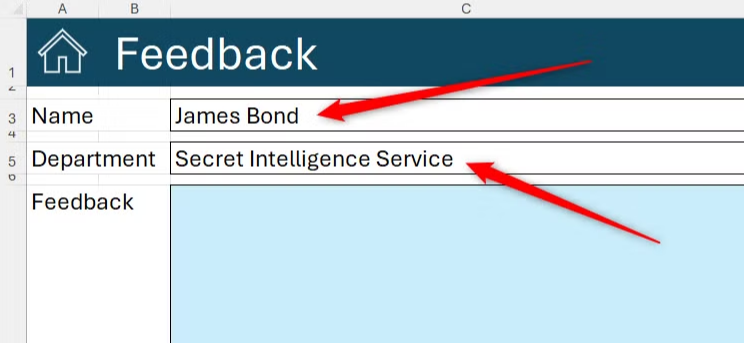 Excel에서는 특정 셀을 잠그고 워크시트를 보호하는 기능을 통해 사용자가 어디에 입력해야 하고 어디에 입력하면 안 되는지 정확히 알 수 있습니다. 예를 들어, 이 예에서는 사람들이 C3, C5, C7 셀만 클릭하고 편집할 수 있도록 하려고 합니다.