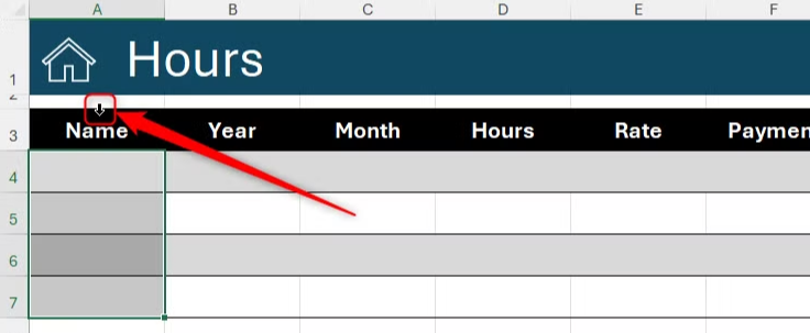 Excel의 데이터 유효성 검사 도구는 사용자가 특정 셀에 올바른 유형의 정보를 입력하는지 확인하는 데 도움이 됩니다. 사람들이 드롭다운 목록에서 자신의 이름을 선택할 수 있도록 이름 열부터 시작해 보겠습니다.