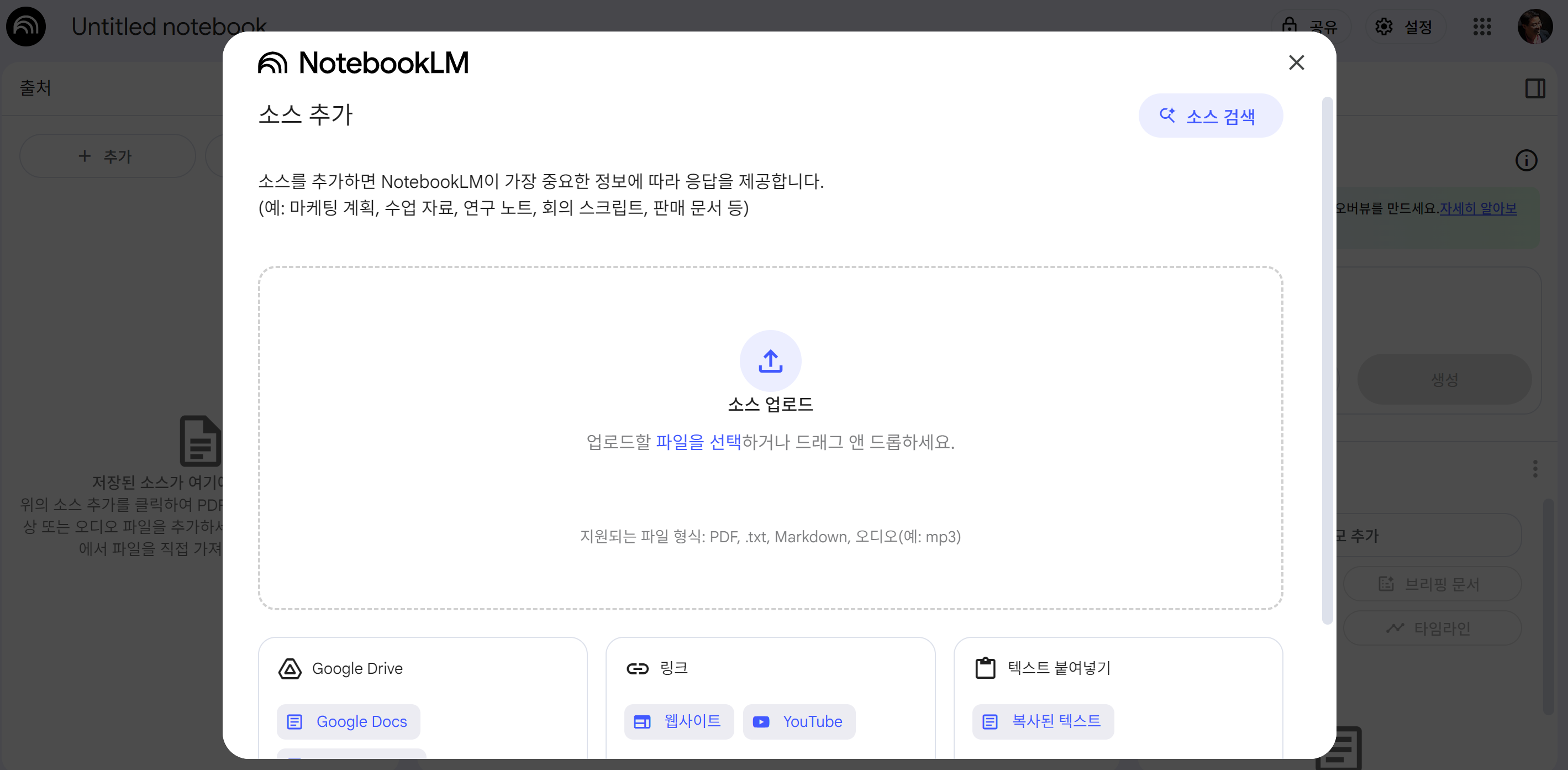 Word 파일을 .txt 또는 PDF 형식으로 내보내 NotebookLM 노트북에 업로드할 수 있습니다. 또 다른 방법으로는 Word 문서를 Google Docs에 업로드한 후 NotebookLM의 소스 메뉴에서 노트북으로 옮길 수 있습니다. 대부분의 사용자는 첫 번째 방법으로 Google Docs와 Drive를 직접 다룰 필요가 없으므로 아무런 문제가 없을 것입니다.