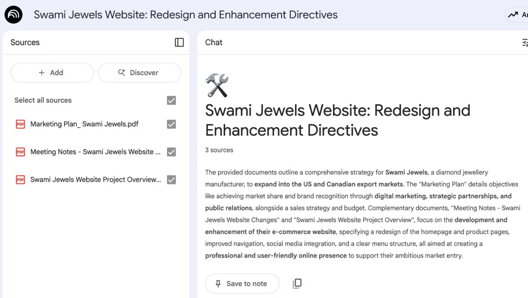 이제 모든 문서에서 관련 정보를 수동으로 찾는 대신 다음과 같은 질문을 NotebookLM에 할 수 있습니다.