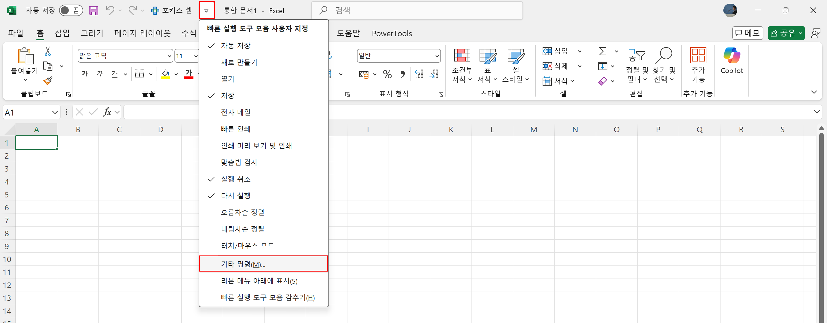 (2) QAT 아래쪽 화살표를 클릭하고 "기타 명령"을 선택합니다.
