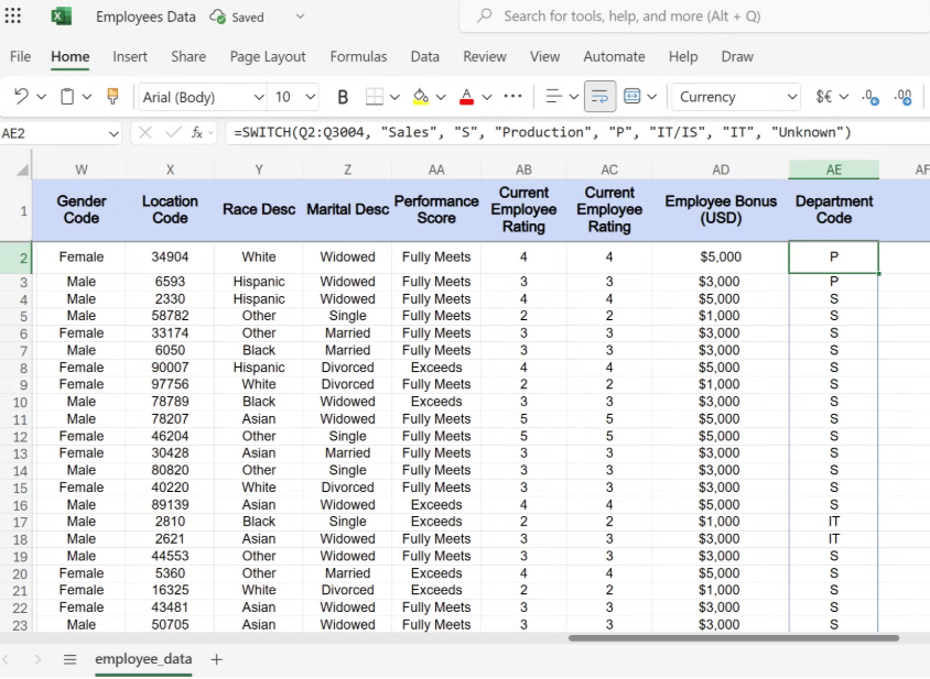 하지만 이런 단점을 상쇄할 큰 장점은 가독성과 유지 관리입니다. 복잡한 조회에 Excel의 SWITCH 함수를 사용하면 수식이 자동으로 문서화됩니다. 스프레드시트를 검토하는 사람은 난해하고 중첩된 IF 문이 없으므로 각 코드가 무엇을 나타내는지 즉시 이해할 수 있습니다.