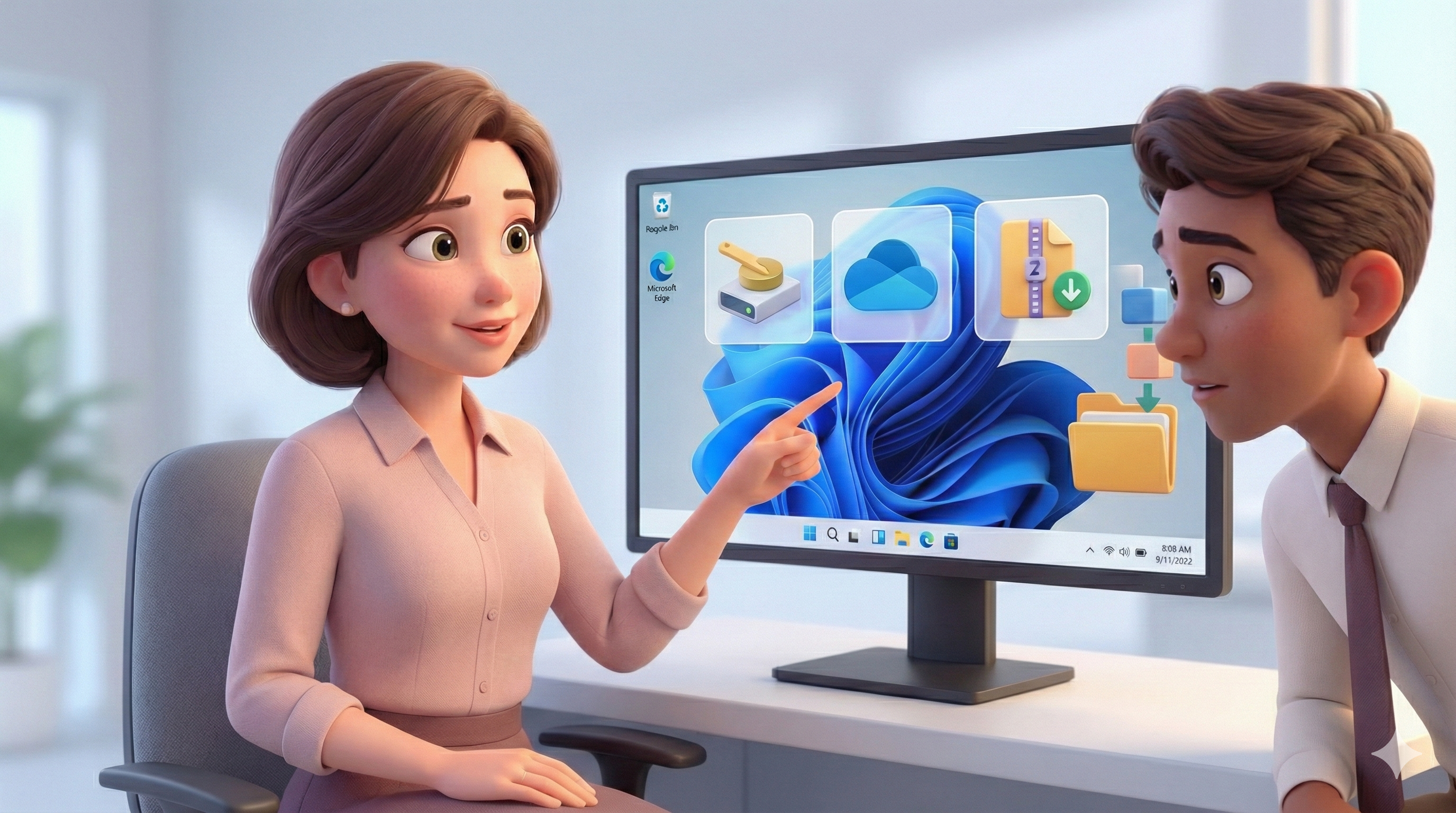 휴지통을 비우고, 중복 파일을 제거하고, 사용하지 않는 앱을 삭제한 후에도 할 수 있는 일은 더 많습니다. PC에 자주 사용하지 않는 대용량 파일, 비디오 또는 폴더가 있다면 압축하여 공간을 절약할 수 있습니다.