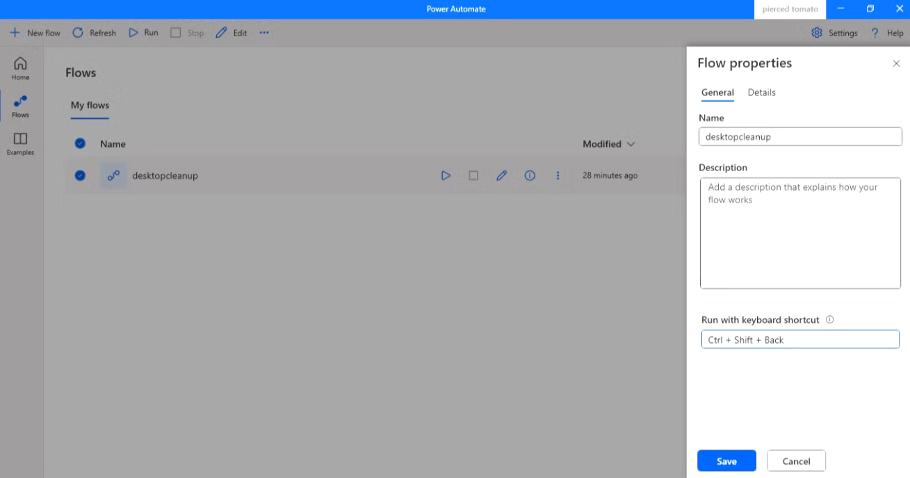 이 시점에서 언제든지 Power Automate를 실행하고 재생 버튼을 클릭하여 데스크톱을 한 번에 정리할 수 있습니다. 더 나아가, 이 자동화를 백그라운드에서 실행하기 위한 단축키를 설정할 수 있습니다.