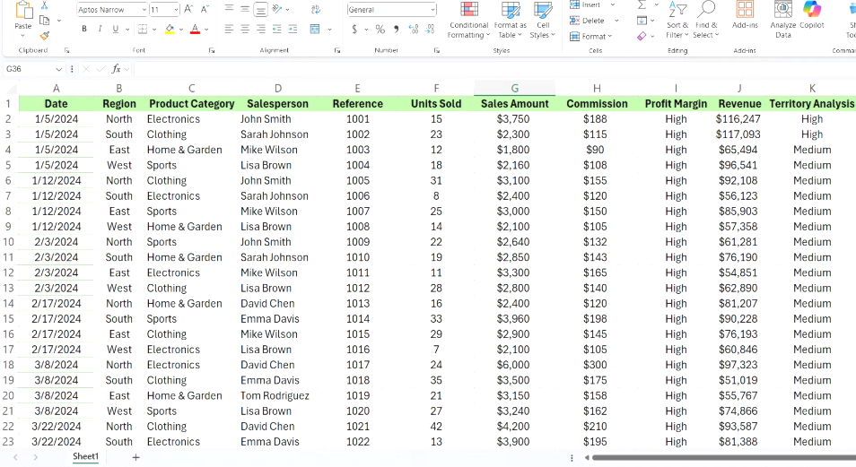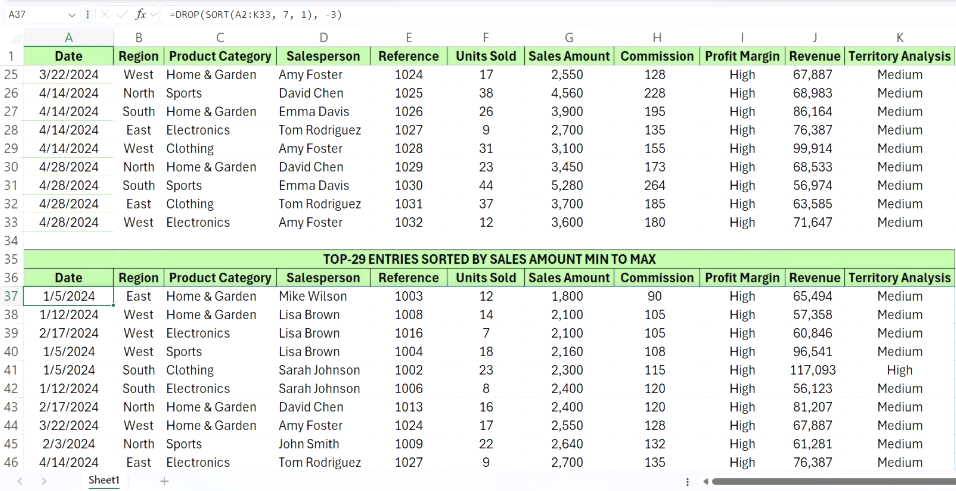 최고 실적을 내는 핵심은 먼저 데이터를 매출이 가장 높은 것부터 낮은 것 순으로 정렬하는 것입니다. 이를 위해 모든 사무직 직원이 알아야 할 Excel 수식 중 하나인 SORT 함수를 사용합니다.