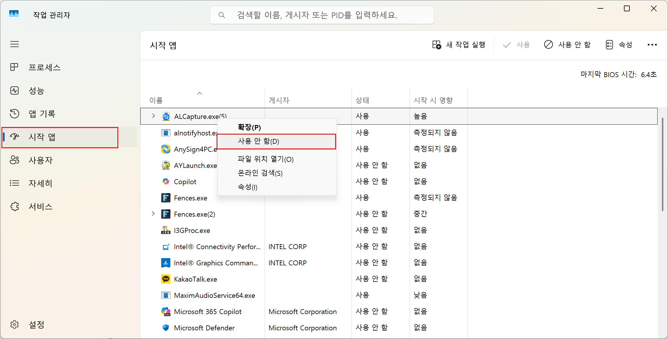 4. 시작 앱 끄기