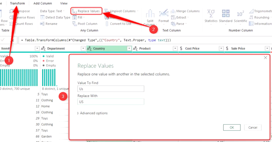 하지만 이렇게 하면 US가 Us로, UK가 Uk로 변환되므로, 변환 탭에서 "값 바꾸기"를 클릭하여 이 문제를 해결해야 합니다.