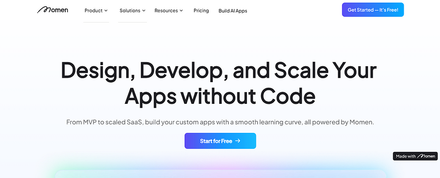 모멘 앱(Momen App)을 이용하면 코딩 기술이 전혀 없어도 웹 앱을 만들 수 있습니다. 앱을 손쉽게 디자인, 개발, 확장할 수 있습니다. 간단한 드래그 앤 드롭 편집기로 프론트엔드에서 백엔드까지 앱을 제작하세요.